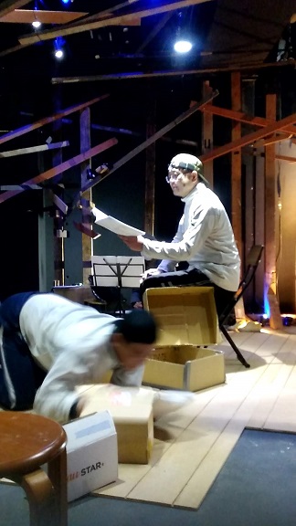 小さな会場ながら、というより、小さな会場ならではの思いっきりの舞台美術の作りこみ。照明のこりっぷり。福井での2上演とはまったく様子のちがうスタイルでのリーディング上演になりました。楽しんじゃった。スタッフたち。