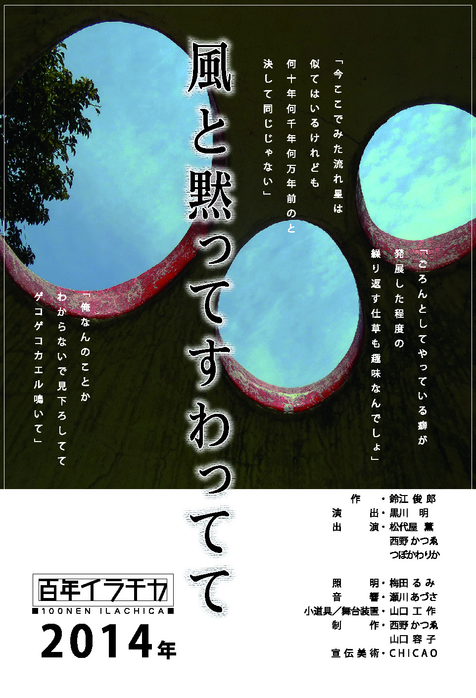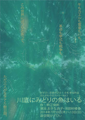 2002年初演の芝居。その再演ではある。だが、だけど、「芸術学科」大学の表現としてふさわしい挑戦をするのだ。創造するのだ。発想を生むのだ。無から有を生む苦しみを苦しむのだ。舞台美術だって違うし、新しいセリフも加わって、違った上演は出来上がりつつある。役者は連日ぐるぐる苦しんでいる。苦しめ苦しめ。私だって苦しむのだ。2014年の上演は、教育現場の状況がより深刻になってる。笑いだってもっとブラックだ。