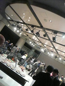 とびちる小道具。舞台からも転げ落ちる役者。ぶつかる汗とパネル。舞台から転げ落ちかけるパネル。段ボールは舞台の奥にふっとんだ。演技空間の脇に座ってスタンバイする役者も何回ひっくりかえされていたことか。