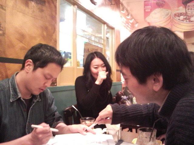 われわれの打ち合わせは熱い。ものすごく熱い打ち合わせの時間、お店はついに暖房を切ってしまった。これは春が近づいているからではない。今日が20度近い気温に上がる暖かな日だったというわけではない。われわれの熱だ。力だ。摩擦と軋轢だ。結局のところ共同作業に向かう情熱の高さが、店員さんを圧倒し、周りの客を圧倒し、高円寺の町を圧倒したのだ。
