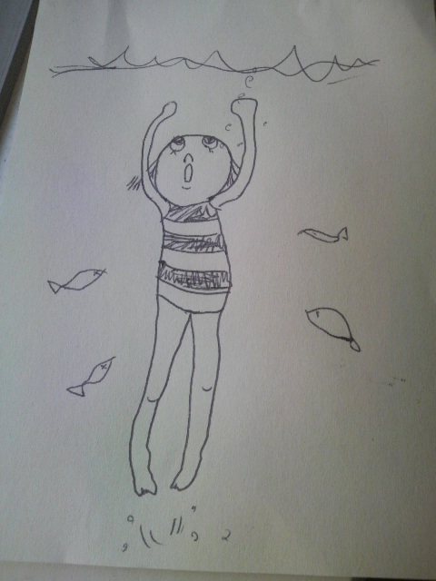 応援するイラストも届いている。おぼれているところじゃないってば。上に上に、完成度の上のほうに向かってすいすい泳いでるところ。おぼれてるところじゃないってば。