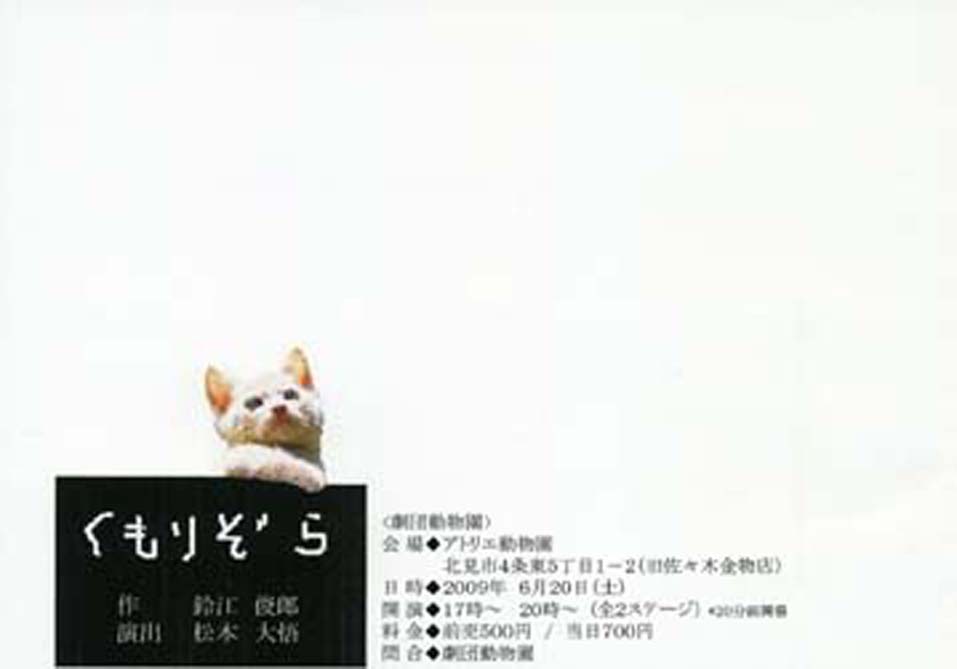 昨年10月に「ホテル山もみじ別館」という私の書き下ろし作品を上演してくれた人たちだ。自分達が管理する稽古場を劇場にして公演までしてしまえる人たち。近所の釧路、帯広という都市の劇団と連帯して演劇祭の根拠地にもできてしまう人たち。近所っていったって本州の感覚だと県をひとつまたいでしまうくらいの距離だけど。いやいやなんといってもとはいえやはり、とてもうらやましく、そして尊敬できる活動をされていた人たち。「ホテル山もみじ別館」という作品は上演の成果もそれはそれはすばらしく、私としてはなんとかしてこの人たちにほかの土地でも再演してほしいと切に願っているところなのだ。