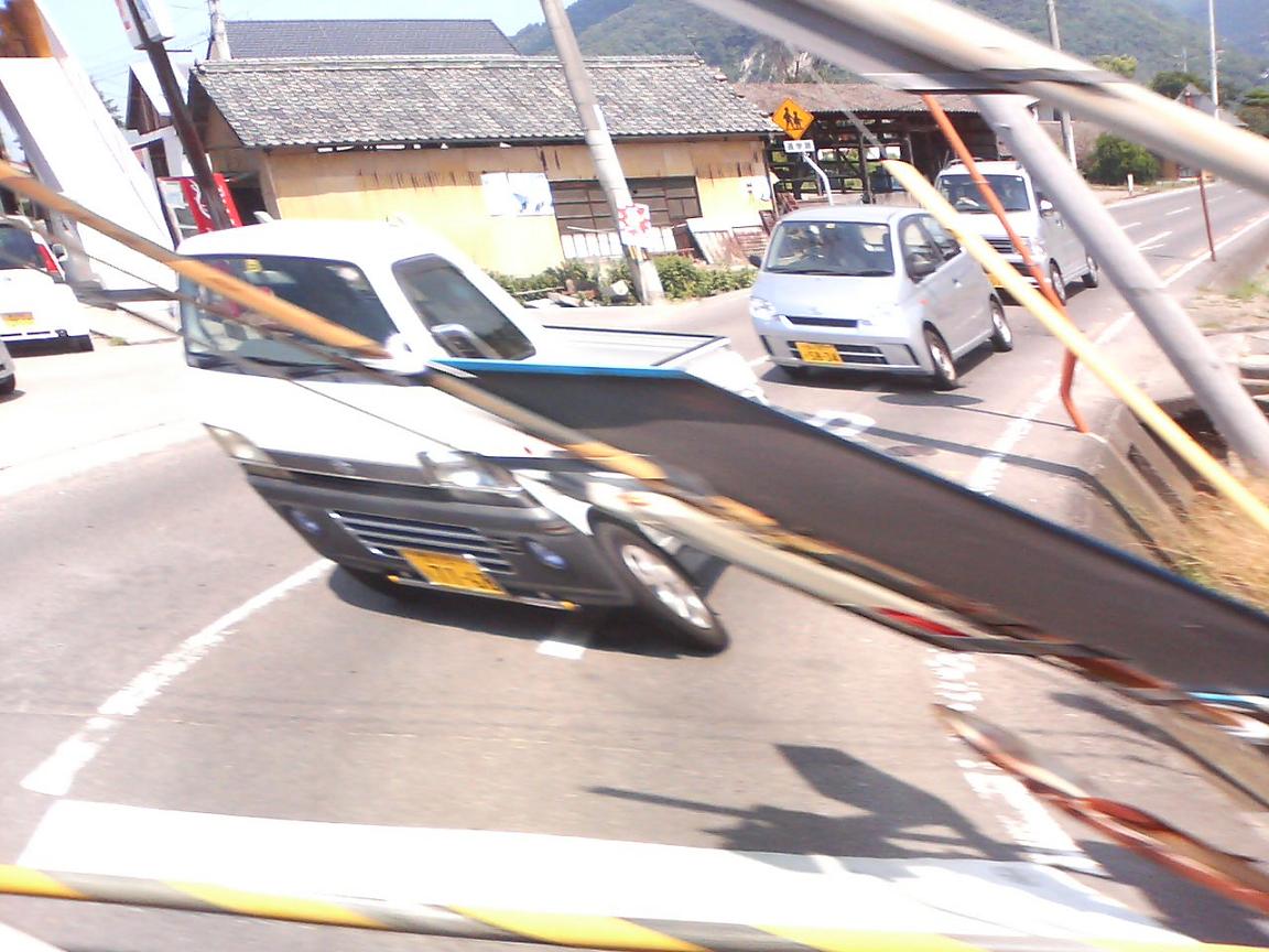 瀬戸内海の風が湿気を払ってしまうのか、ずいぶんさわやかな空気に感じる、夏の松山。電車で走る窓からうつすと、風景はゆがんで画像に定着される。その不思議。