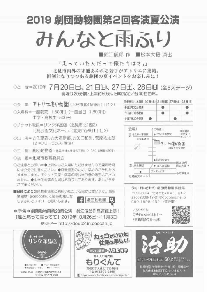 私の書き下ろしを劇団のけいこ場でもある会場で上演してくださったのを見たときに湧いたあの強い情動を、わすれない。その作品では札幌の演劇祭で賞をとるなど、実力の確かな集団だ。