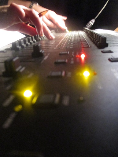 写真は照明のオペレーターが緊張している指先。
