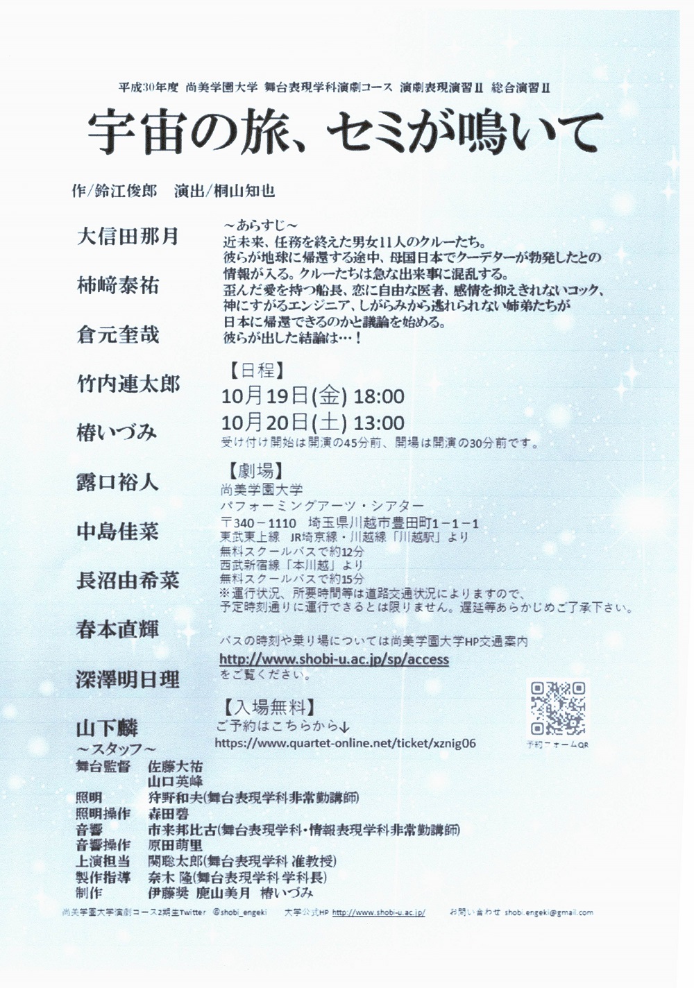 私の台本を上演してくれる。3年生の発表。ういういしいチラシが届いた。