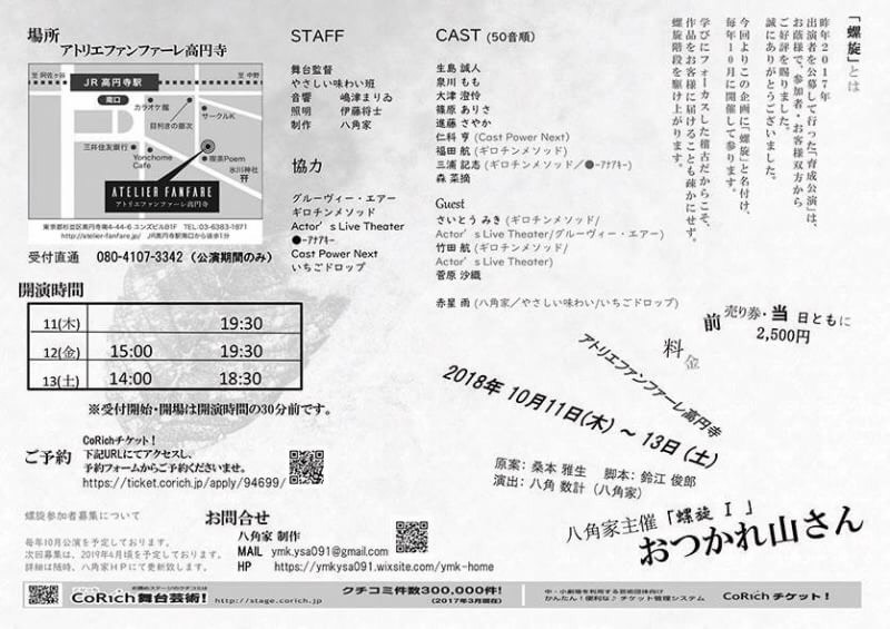 戯曲の講読、上演許可の連絡などは office白ヒ沼 までどうぞ。