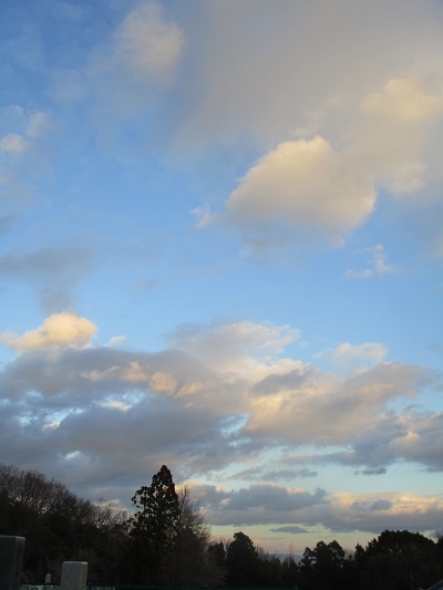 正月に父の墓参り。ここの空はいつも雲がいい。