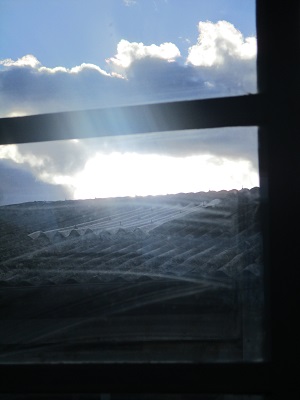 屋根の瓦。太い梁。