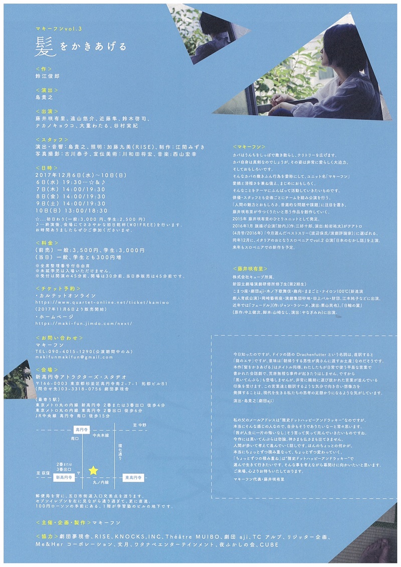 戯曲の講読、上演許可の連絡などは office白ヒ沼 までどうぞ。