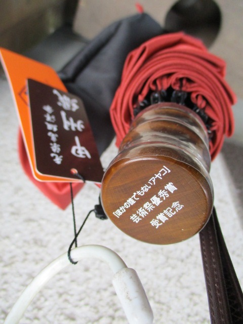 今朝、受賞の記念品が届きました。NHKラジオドラマ「ほかの誰でもないアヤコ」の芸術祭優秀賞、のことです。局の方がつくられた、とのこと。とても感じの良い、かさ。シンプル、しかし内と外のコントラストが鮮やか、おちついた色あい。