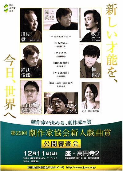 名古屋ではAAF戯曲賞、大阪ではOMS戯曲賞の発表が終わったばかり、北海道でも……12月は戯曲賞の発表が各地で続く、そういう季節って言っていいのか。