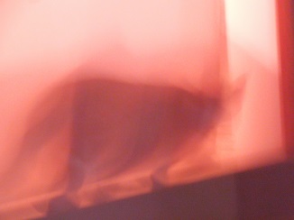 あたたかそうなすりガラスの向こうに、猫。
