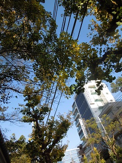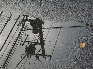 地面を見下ろしたら、空を見上げたような角度の電線が見えた。そら。その隣に落ち葉。