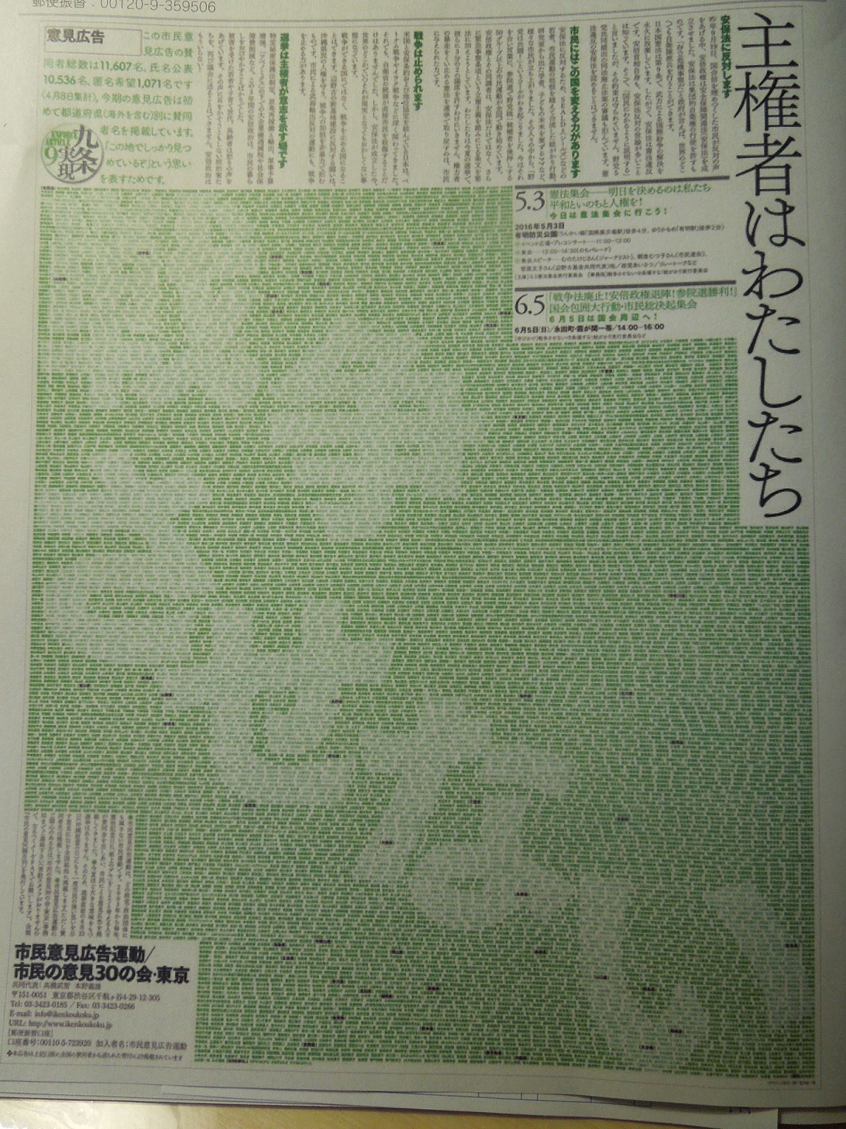 市民意見広告運動に私も加わった。それがこの紙面だ。