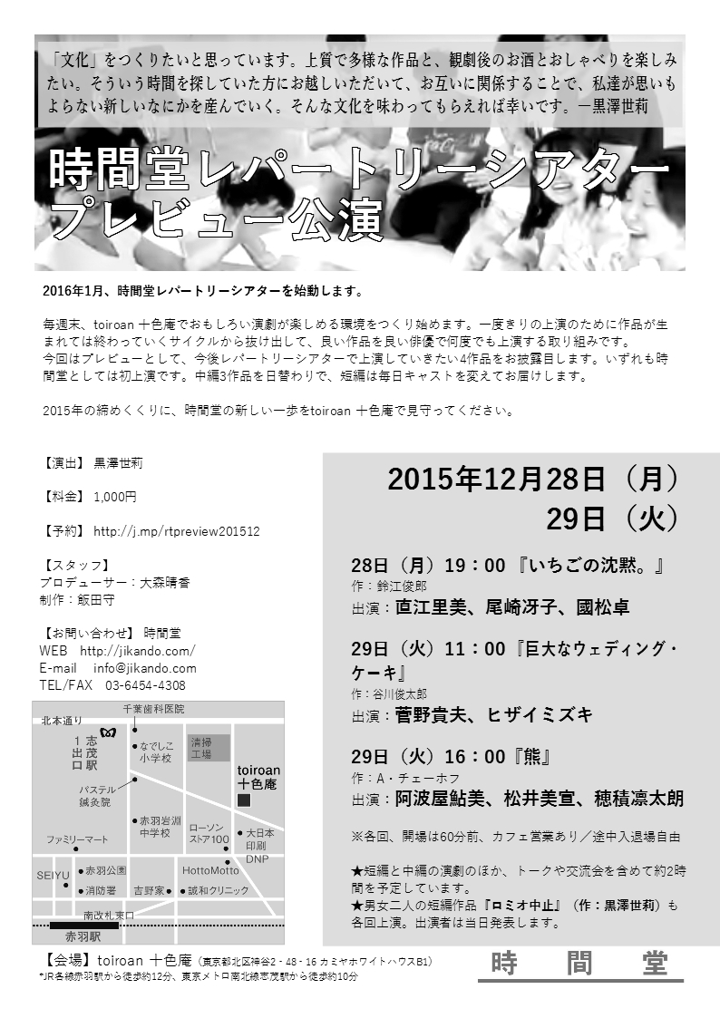 戯曲の講読、上演許可の連絡などは office白ヒ沼 までどうぞ。