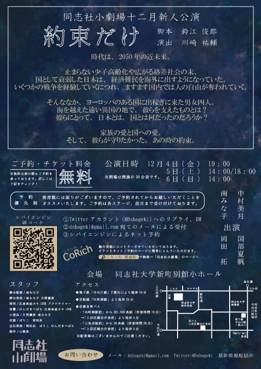 同志社の学生劇団が私の作品を上演してくれる。