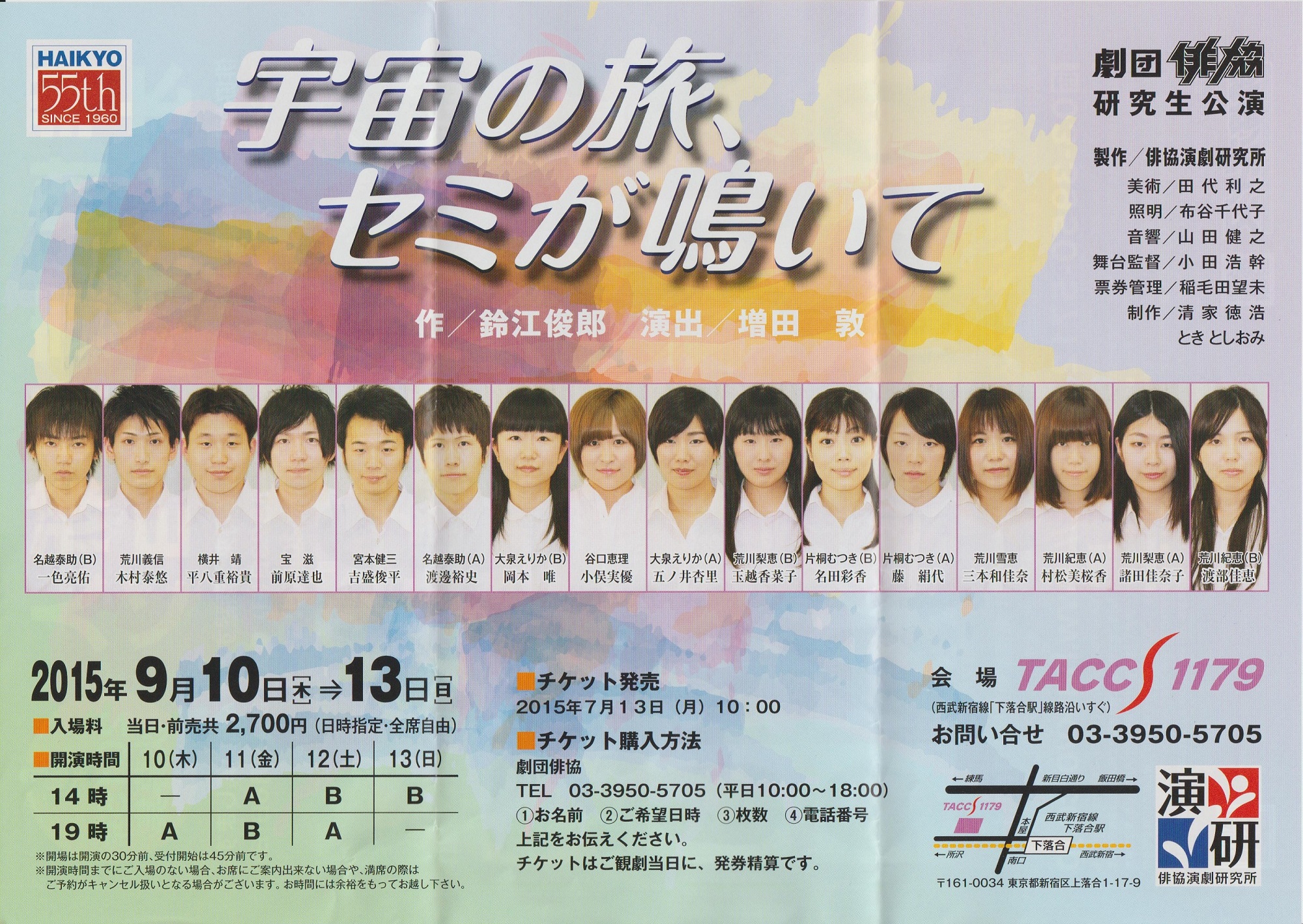 劇団俳協が、研究生公演で「宇宙の旅、セミが鳴いて」を上演してくれる。