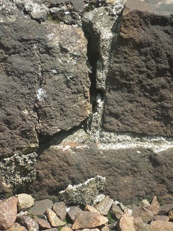 田舎の駅のホーム、石垣がじりじりやける。