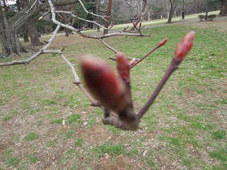 公園いっぱい、今日か明日かとそわそわしている。寒い空。