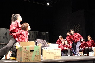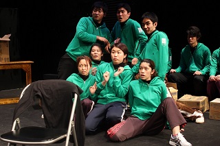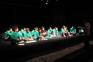 実際は、19人で上演した。1,2,6場-9人のキャストA、3,4,5場―10人のキャストB、って感じだ。もちろん生まれるプロセスは完全にあてがき。だから上演の都合によっては人数をいくらでも変更してやっつけるぞ!という演劇人ならではの文筆の冴え、だ。わはは。台本はまさに稽古場で生まれ、稽古場で否定され、稽古場でつくりあげられていく。そして、上演が終わったら文字として強いものが残っている。つぎの見も知らぬ人たちが演じることになって、また全然違ったまるであてがきか?というような芝居になるのが奇跡なんだ。