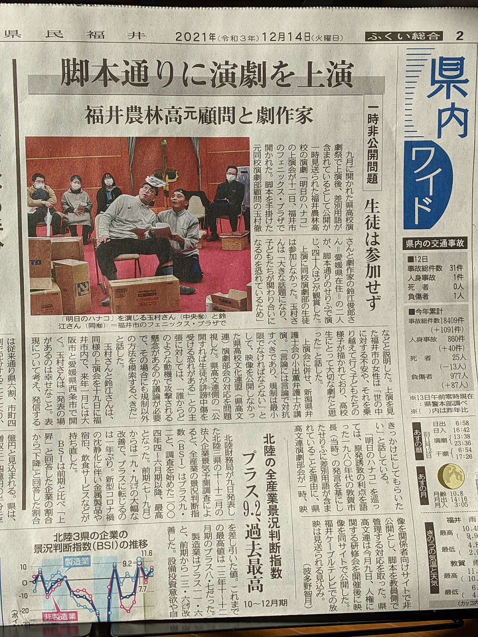 ”上演した生徒たちは、「言われなき批判がくるかもしれない」と聞かされて、不安な面持ちになりました。けれども、そのあと、それでも放映してほしいと言いました。悔しい、と泣いていました。自分たちが稽古してきた劇が放送してもらえないのは悔しいと。”