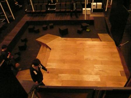 そして、高いところから役者たちのいた空間を見下ろしながら演奏することになる。お客さんをも見下ろすその演奏スペースからの眺めはこんな感じ。不思議でしょ。
